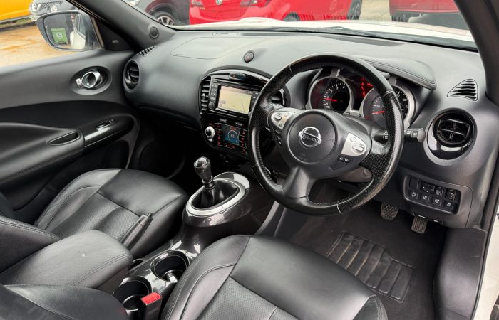 WE ARE THE LEADING NISSAN SPECIALIST IN THE AREA. ALL CARS ARE AVAILABLE FOR IN-HOUSE FINANCE. ALL OUR CARS ARE HAND PICKED, FULLY SERVICED/INDSPECTED BY OUR TRAINED TECHNICIANS., , ï‚§ – 2 OWNER,, ï‚§ – 3 MONTHS PEACE OF MIND WARRANTY,, ï‚§ – MAJOR SERVICE INCLUDING NEW TIMING CHAIN, , – NEW TYRES, – NEW CLUTCH KIT, – NEW DISCS AND PADS, – FULL SERVICE HISTORY, , ï‚§ – WARRANTED LOW MILEAGE, , , HPI CLEAR, PART EXCHANGE, EXTENDED WARRANTIES, NATIONWIDE DELIVERY, DRIVE AWAY INSURANCE, BREAKDOWN COVER AVAILABLE, 3 months warranty, Next MOT due 12/02/2027, Last serviced on 12/02/2026 at 44,876 miles, Full service history, Excellent bodywork, Black Full leather interior – Excellent Condition, Tyre condition New, 5 seats, White, 2 owners, Upgrades – Premium Leather – Black with Black Centre Console, Comfort Pack, Standard Features – 12V Socket – Front, 17in Alloy Wheels – Urban, 2 Speed Wiper with Variable Intermittent, 3 Adjustable Rear Head Restraints, 60-40 Split Rear Folding Seats, AUX Socket for MP3 Player, Airbag – Driver, Airbag – Front Passenger, Airbags – Curtain, Airbags – Side, Armrest – Coloured Stitching to Matching Centre Console, Automatic Climate Control with Pollen Filter, Automatic Lights and Wipers, Black Headliner, Body Coloured Handles, Body-Coloured Door Mirrors with LED Indicators, Boot Capacity with Flexi-Floor Board, Chrome Interior Door Handles, Colour Reversing Camera, Cruise Control with Speed Limiter, DAB and Internet Radio with 6 Speakers, Drive Computer with Temperature Gauge, ESP ABS EBD and Brake Assist, Electric Folding and Heated Door Mirrors, Engine Immobiliser, Front Armrest, Front Cupholders x2, Front Door Pockets with Drinks Bottle Holders, Front Fog Lights, Front Map Reading Lights, Front Seat Belt Height Adjustment, Front Seat Belts with Load Limiter and Pretensioners, Front and Rear Electric Windows, Gear Shift Indicator, Glovebox, Height Adjustable Driver Seat, ISOFIX Child Seat Anchoring Points, Intelligent Key with Start Push Button, LED Signature Daytime Running Lights, Leather Steering Wheel and Gear Knob, Nissan Dynamic Control System, NissanConnect, Passenger Airbag Cut-Off Switch, Power Assisted Steering – Speed Sensitive, Puncture Repair Kit, Rear Door Child Locks, Rear Privacy Glass, Rear Tonneau Cover Integrated into Tailgate, Rear Wiper with Intermittent, Safety Pack, Seats – Heated Front, Steering Wheel Mounted Audio Controls, TPMS – Tyre Pressure Monitoring System, Telephone – Bluetooth Integration, Tilt Adjustable Steering Wheel, Traction Control, USB Port, £7,350